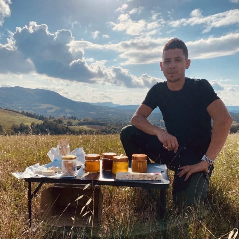 Jérôme Clavel, apiculteur, produit du Miel Biologique de Lozère et d’Aveyron, situé sur l’Aubrac et certifié bio AB.