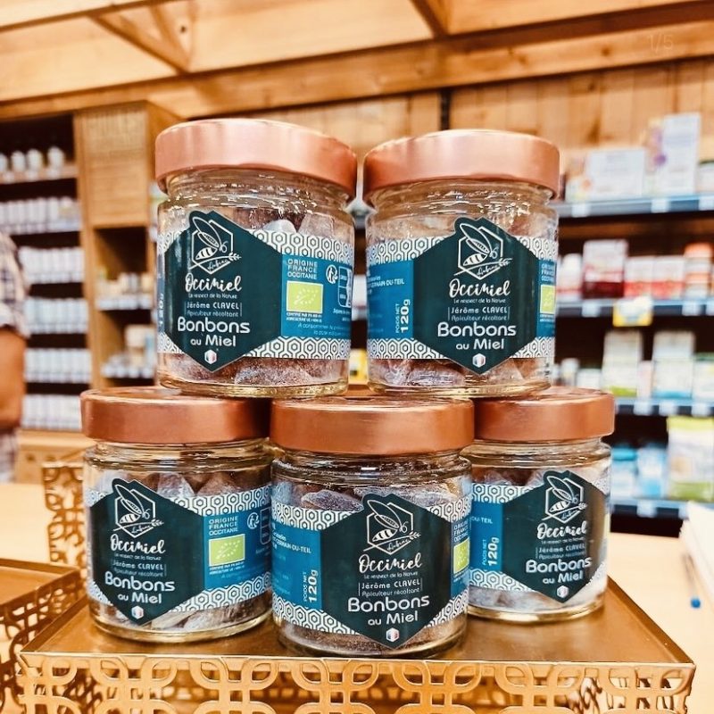 Ses miels ? Aubépine, Acacia, Fleurs d’été, Bruyère blanche, Châtaignier, Lavande… Mais Jérôme ne s’arrête pas là : Occimiel propose également de la moutarde au miel, du vinaigre de miel, du nougat blanc, du savon à la cire d’abeille et au miel, des bonbons au miel et à la propolis, des croquants au miel, le tout BIO bien sûr !