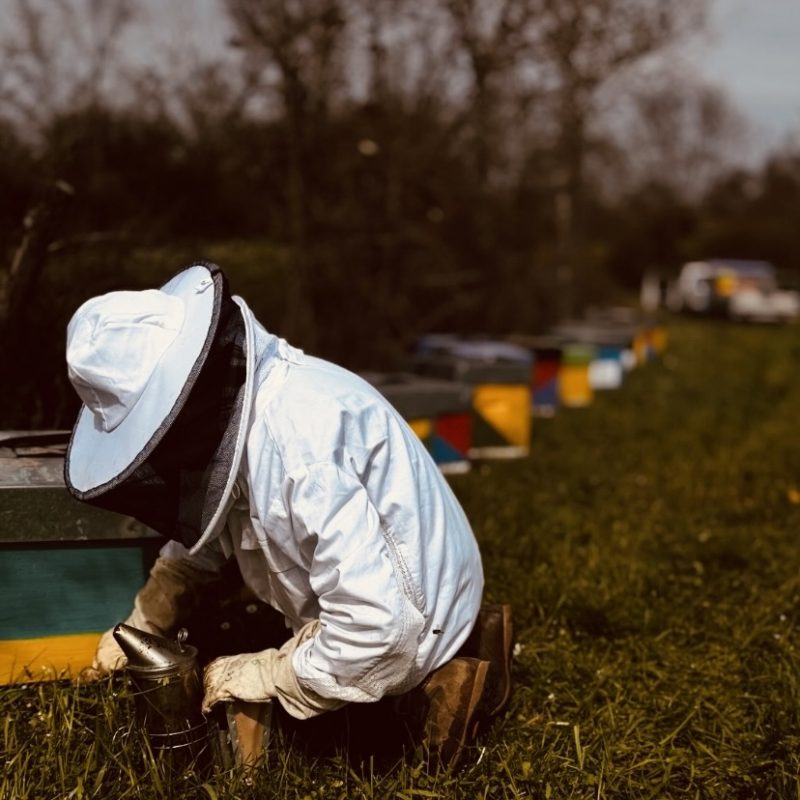 Avec plus de 200 ruches, ses journées sont bien remplies : il veille sur ses abeilles, comprend leurs besoins et cherche les meilleurs endroits riches en biodiversité pour leur bien-être.